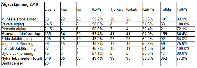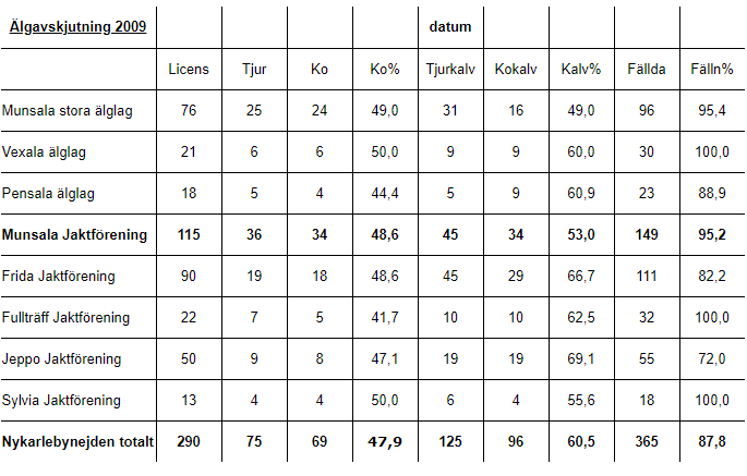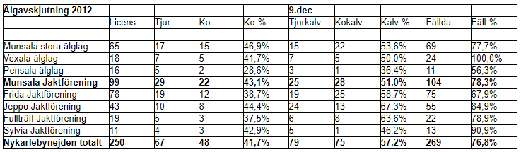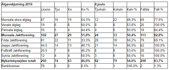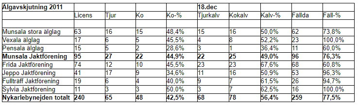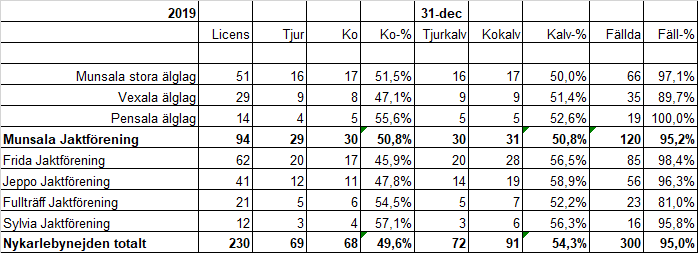 | JAKTLAG TJUR KO TKALV KKALV TOTALT |