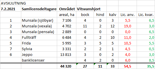 | 15.2.2022 | Samlicensdeltagarens namn | Området | Vitsvanshjort | ||||